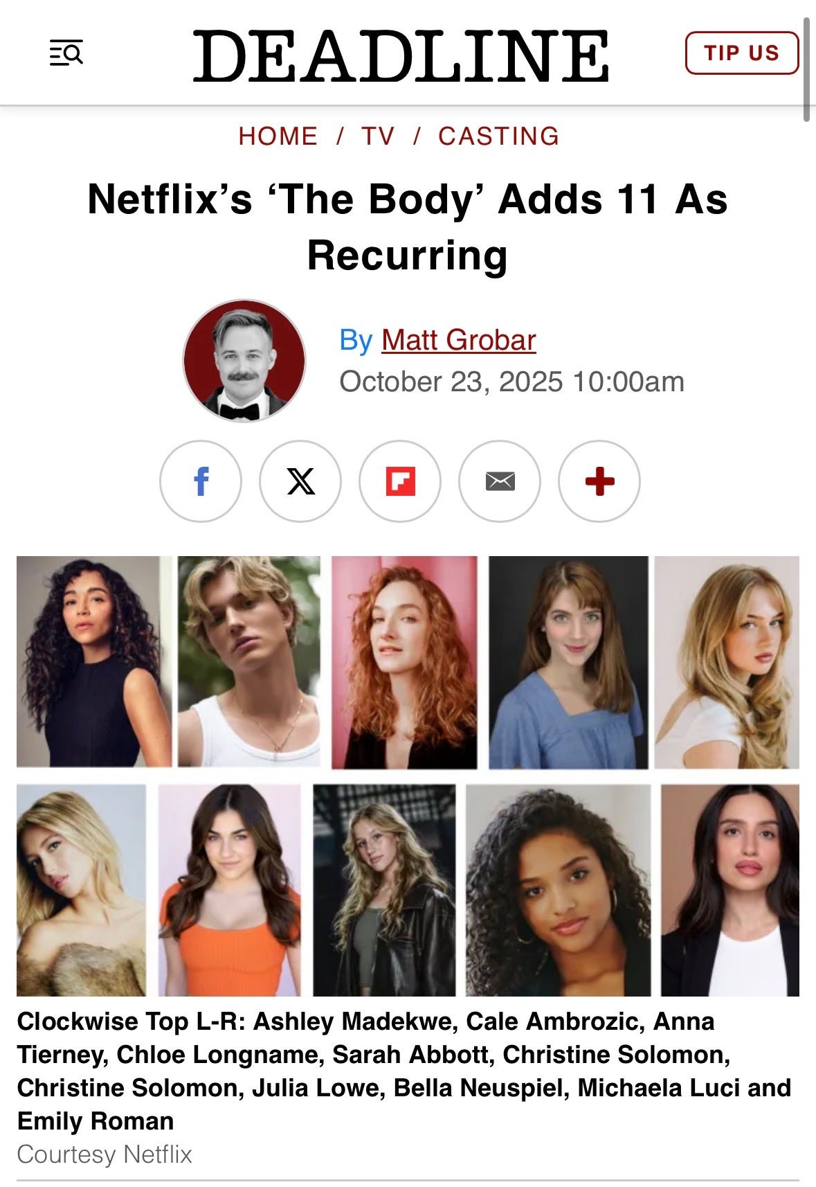 Some of you may have already seen the Deadline announcement—I’ve joined the new Netflix series The Body as a recurring character. But before I get into that, I want to tell you something important: don’t give up on your dreams.
