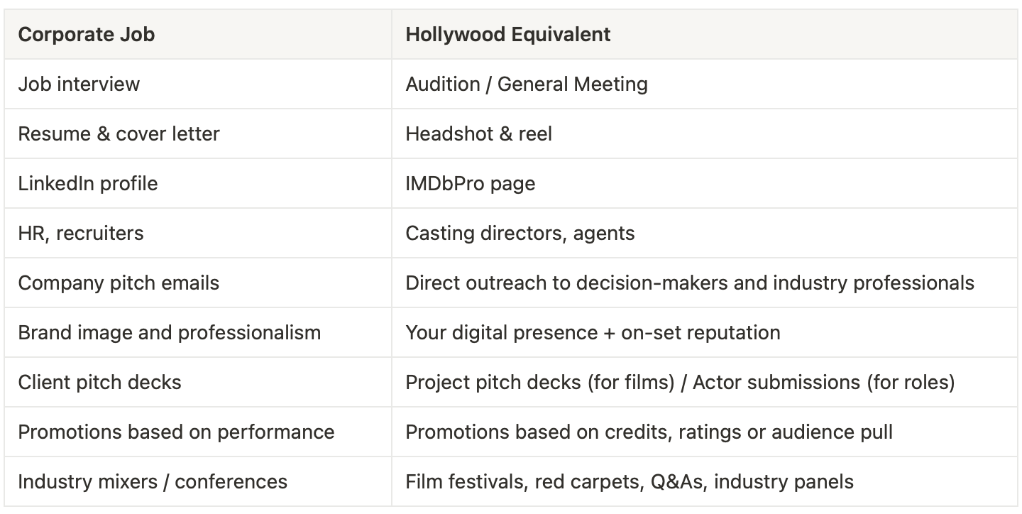 The corporate part—pitching, branding, packaging, negotiating—is often hidden behind agents, managers, or producers. And yes, that’s their job. But you need to understand it too, because at some point, you’ll be pitching yourself, branding yourself, and even negotiating with your agent on the deal you’ve been offered.